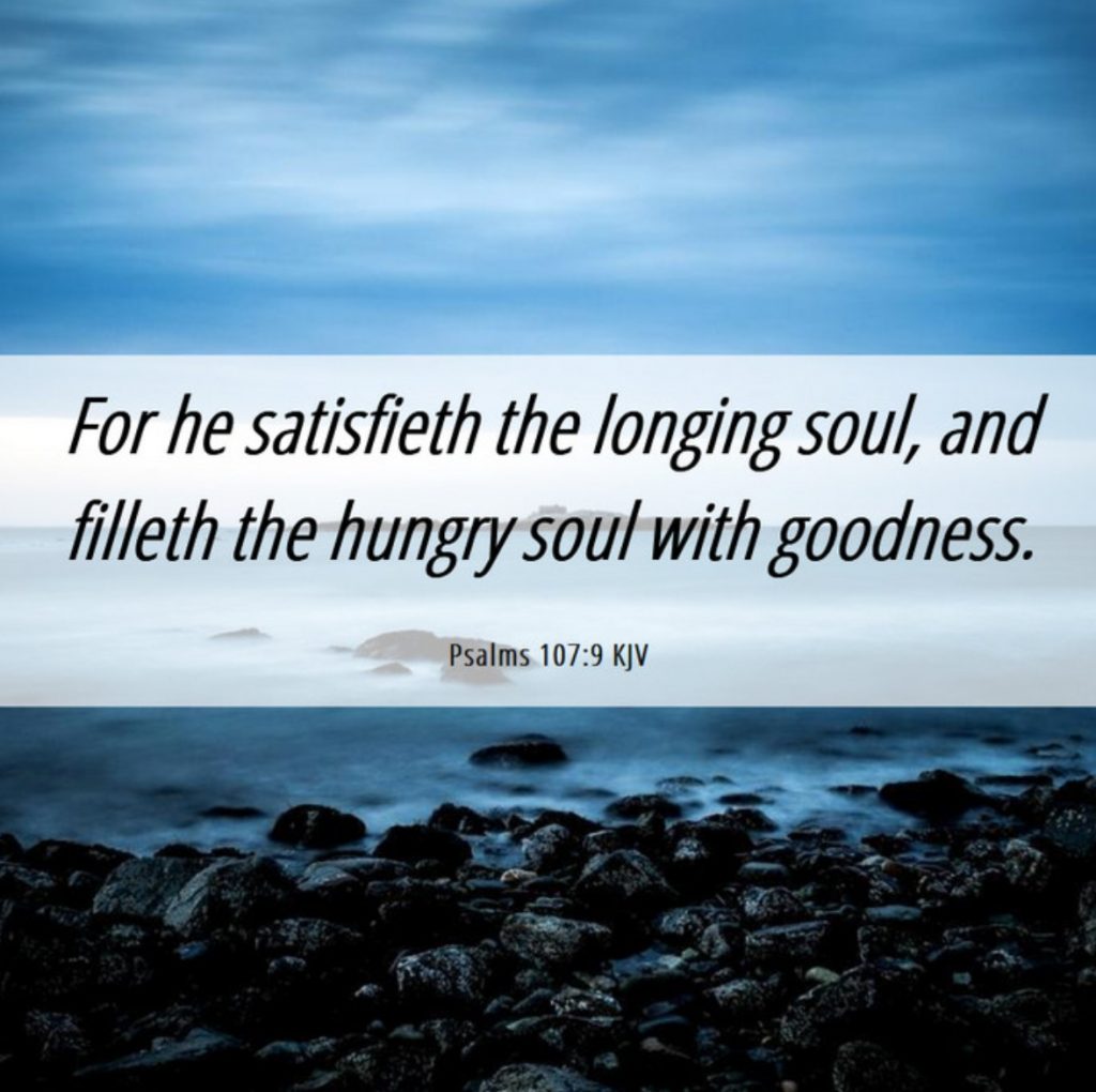 “For He satisfies the longing soul, and the hungry soul he fills with good things” (Psalms 107:9, ESV).